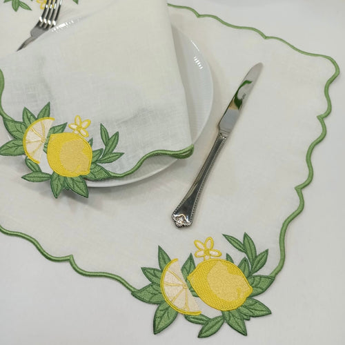 Yellow Embroidered Linen Placemats (4pcs/set)